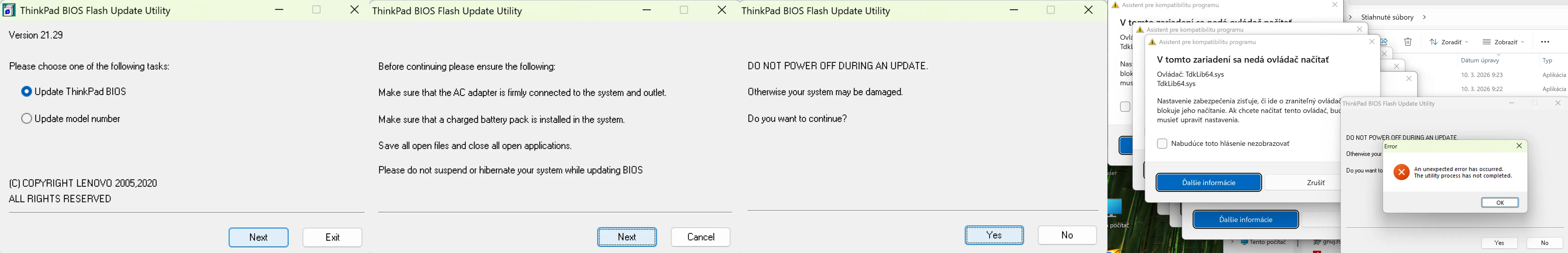 First, I downloaded the update software for Windows from the Lenovo manufacturer's website and ran it. I was not happy with the result, because the procedure ended in failure.